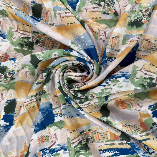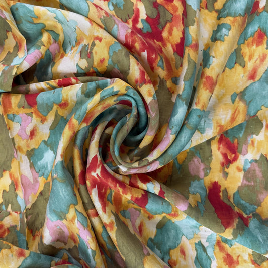 Tencel Nylon Digital Print - Teal & Yellow Abstract