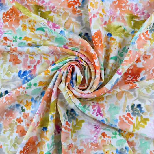 Rayon Slub Digital Print - Coral Watercolour Florals