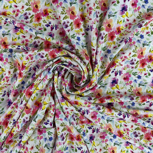 Watercolour Florals - Pink & Multi - Linen Blend Slub