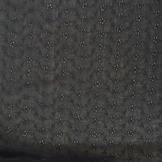 Embroidered Eyelet Cotton Voile - Flower Vines - Black