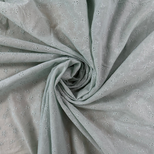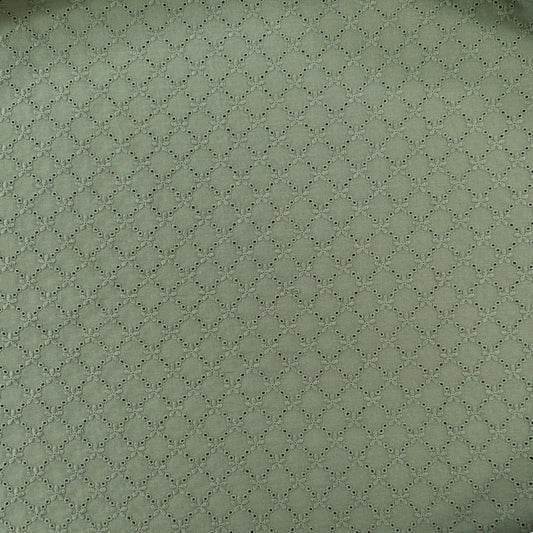 Embroidered Eyelet Cotton Lawn - Geometric Floral - Sage