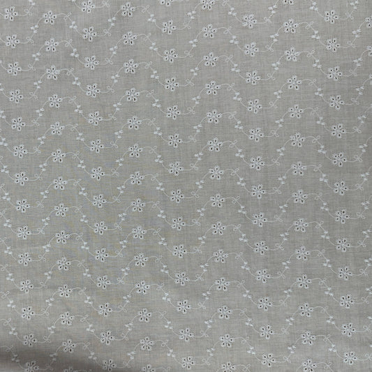 Embroidered Eyelet Cotton Voile - Flower Vines - Ivory