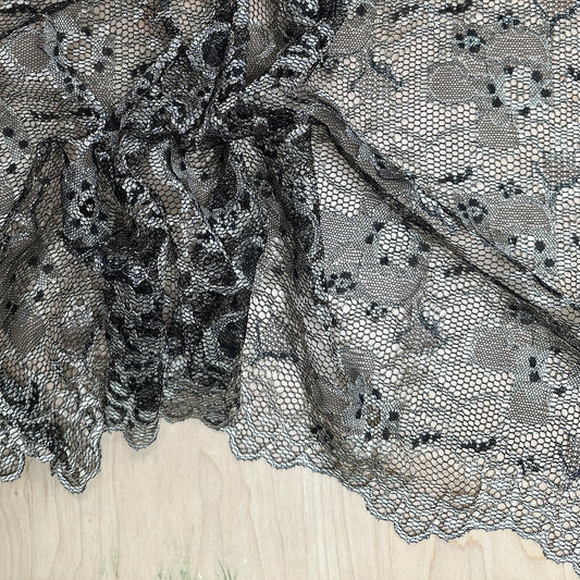 Gold and Black Nylon Floral Lace - Metallic Foil - Deadstock