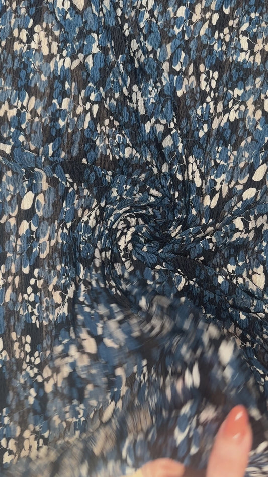 Abstract Crinkle Mesh Knit - Abstract Blue and Black - Poly