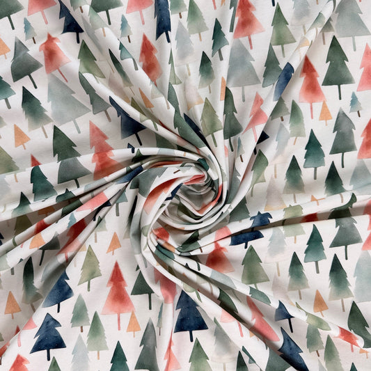 Digitally Printed Watercolour Cotton Jersey Knit - Winter Trees