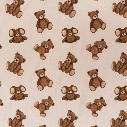 Digitally Printed Watercolor Cotton Jersey Knit - Teddy Bear