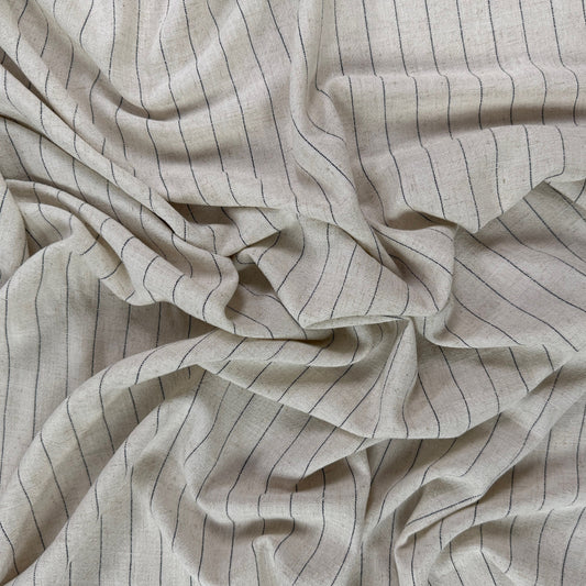 Silky Linen Rayon Noil - Natural & Black Stripe