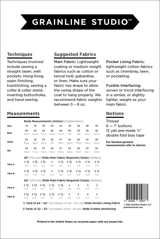 The Tamarack Jacket Pattern - Size 14-30 - Grainline Studio