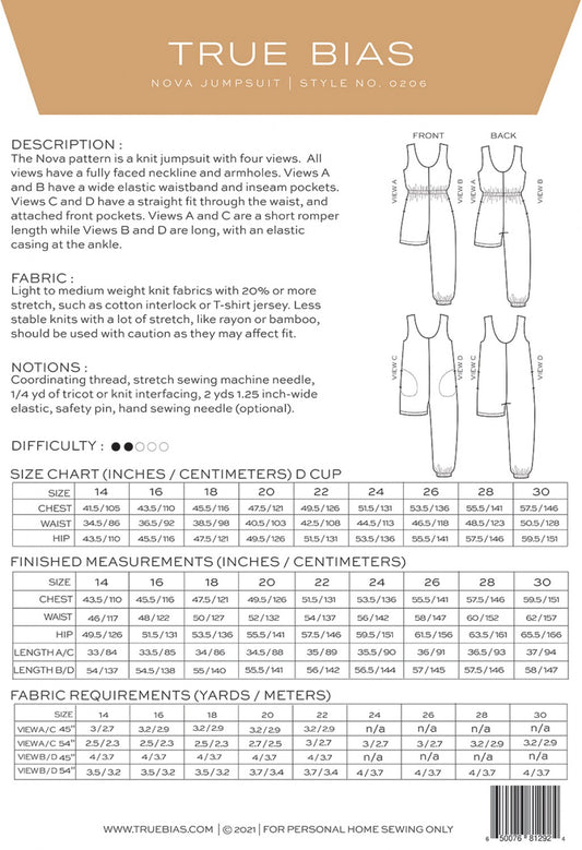 Nova Jumpsuit - Size 14-30 - By True Bias Patterns