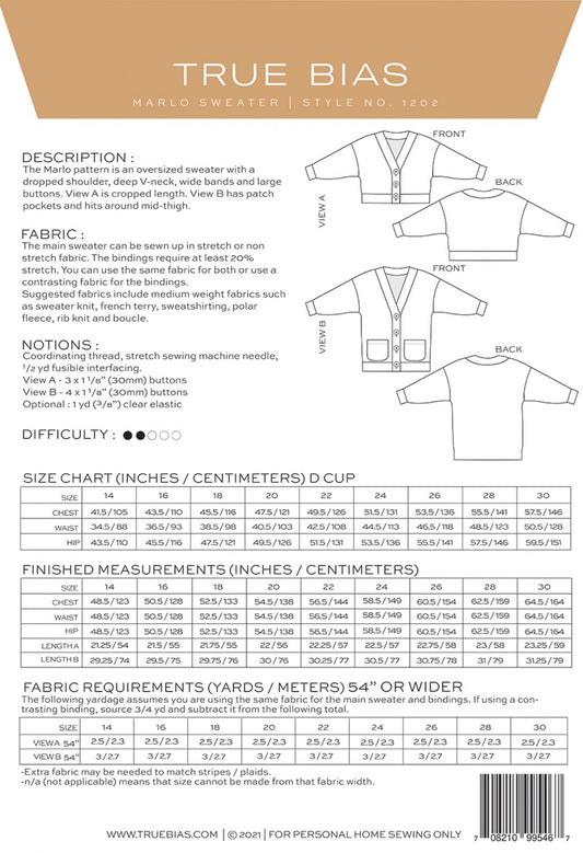 Marlo Sweater -14 - 30 - By True Bias Patterns