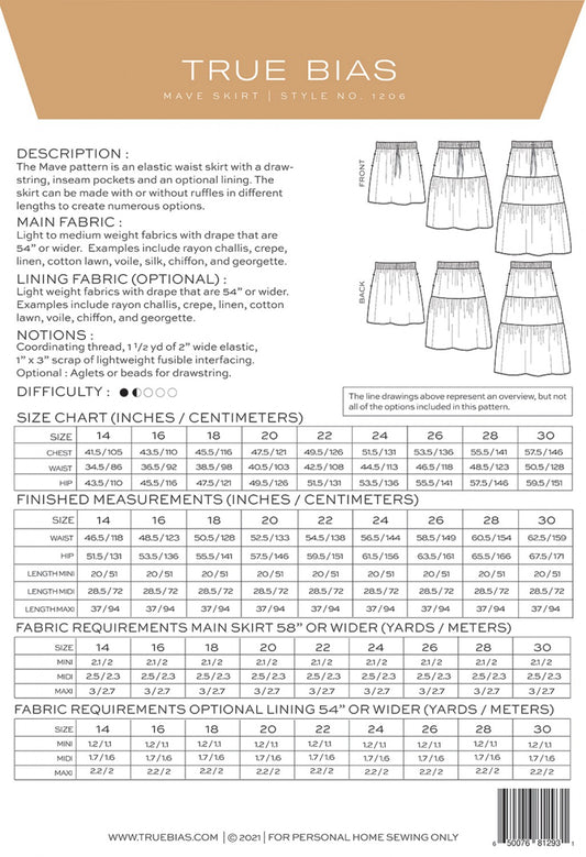 Mave Skirt - 14 - 30 - By True Bias Patterns