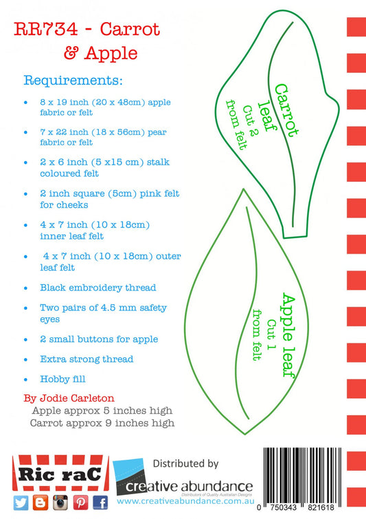 Ric Rac - Carrot and Apple - Soft Toy or Pin Cushion