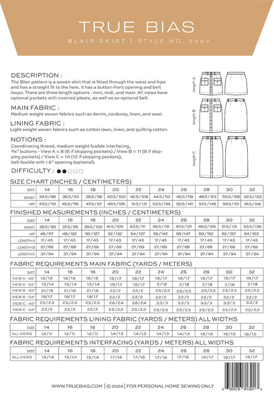 Blair Skirt - 14- 32 - By True Bias Patterns