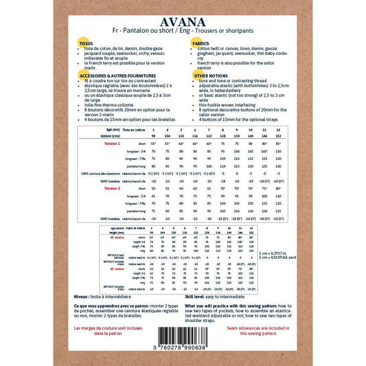 Ikatee - AVANA pants or shortpants- 3-12 years - Paper Sewing Pattern