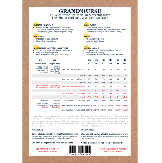 Ikatee - GRAND'OURSE Kids Cardigan - 3-12Y - Paper sewing pattern