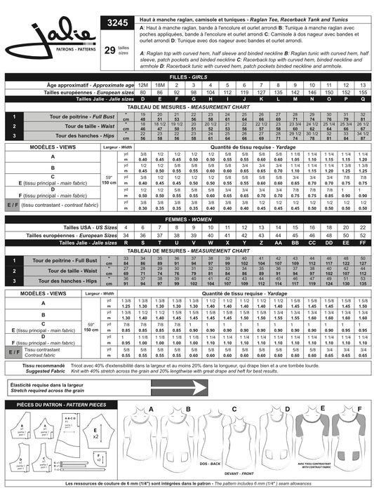 Jalie - 3245 - Raglan Tee, Racerback Tank and Tunics