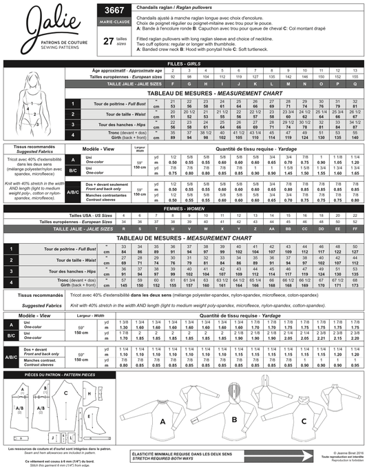 Jalie - 3667 - MARIE-CLAUDE Raglan Pullover
