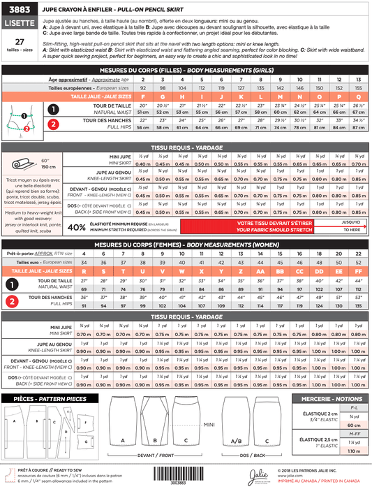 Jalie - 3883 - LISETTE Pull-on Pencil Skirt