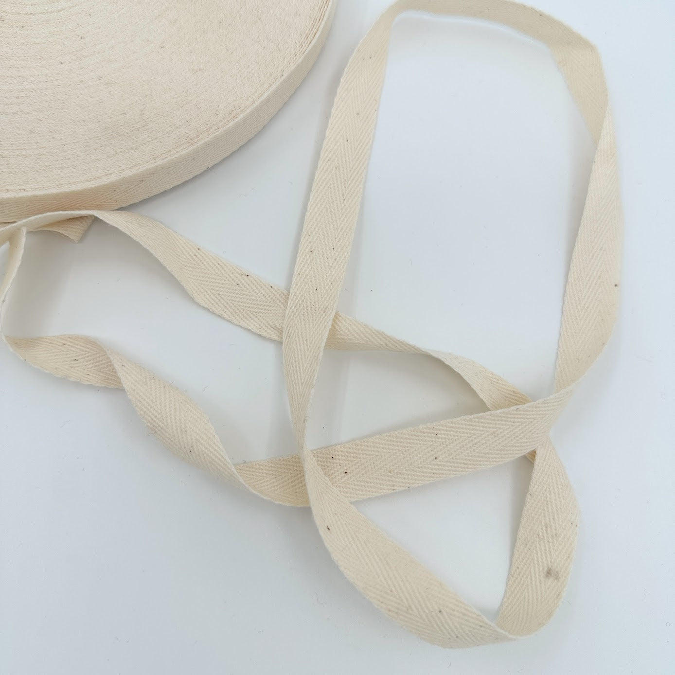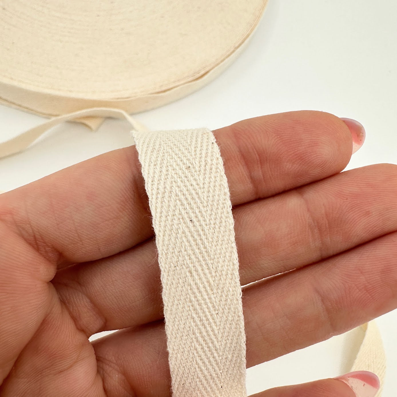 13mm Herringbone Twill Tape 100% Cotton - Natural - By the Yard