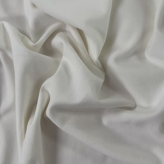 Soft and cozy bamboo and cotton fleece fabric in ivory. A great midweight multipurpose fabric with some stretch for added comfort. Use it for sweatpants, hoodies, cardigans, baby clothes & more.