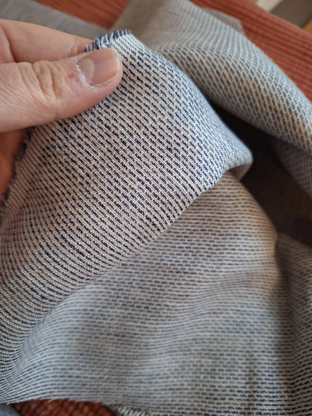 A beautiful dress weight dyed linen. For light tops and dresses. Navy and white threads woven in a unique yarn dyed pattern.
