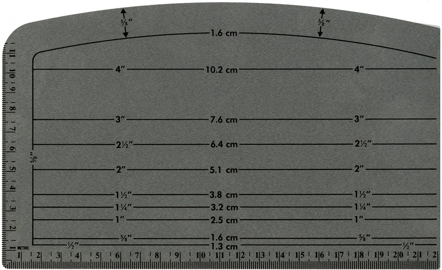 Make a handy addition to your stitching kit with this Hem Gauge from Dritz. Featuring a perfect combination of curves and right angles, this gauge for hems is ideal for pressing turned edges and straight or curved hems. It also comes in handy for shaping waistbands, belts, pockets and more. For hems 1/4in to 4in on a straight edge and 1/4in to 2.5in on a curved edge. To turn and press edges on pockets, pattern alterations, belt and waistbands. To turn and press edges before stitching patches and appliques in place.
