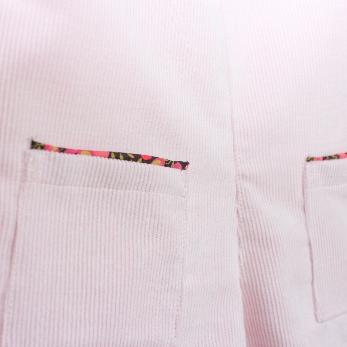 Tissu cotonnade imprimée à motifs ou contrastante pour les doublures/parementures des bavettes, des bretelles et les options passepoil