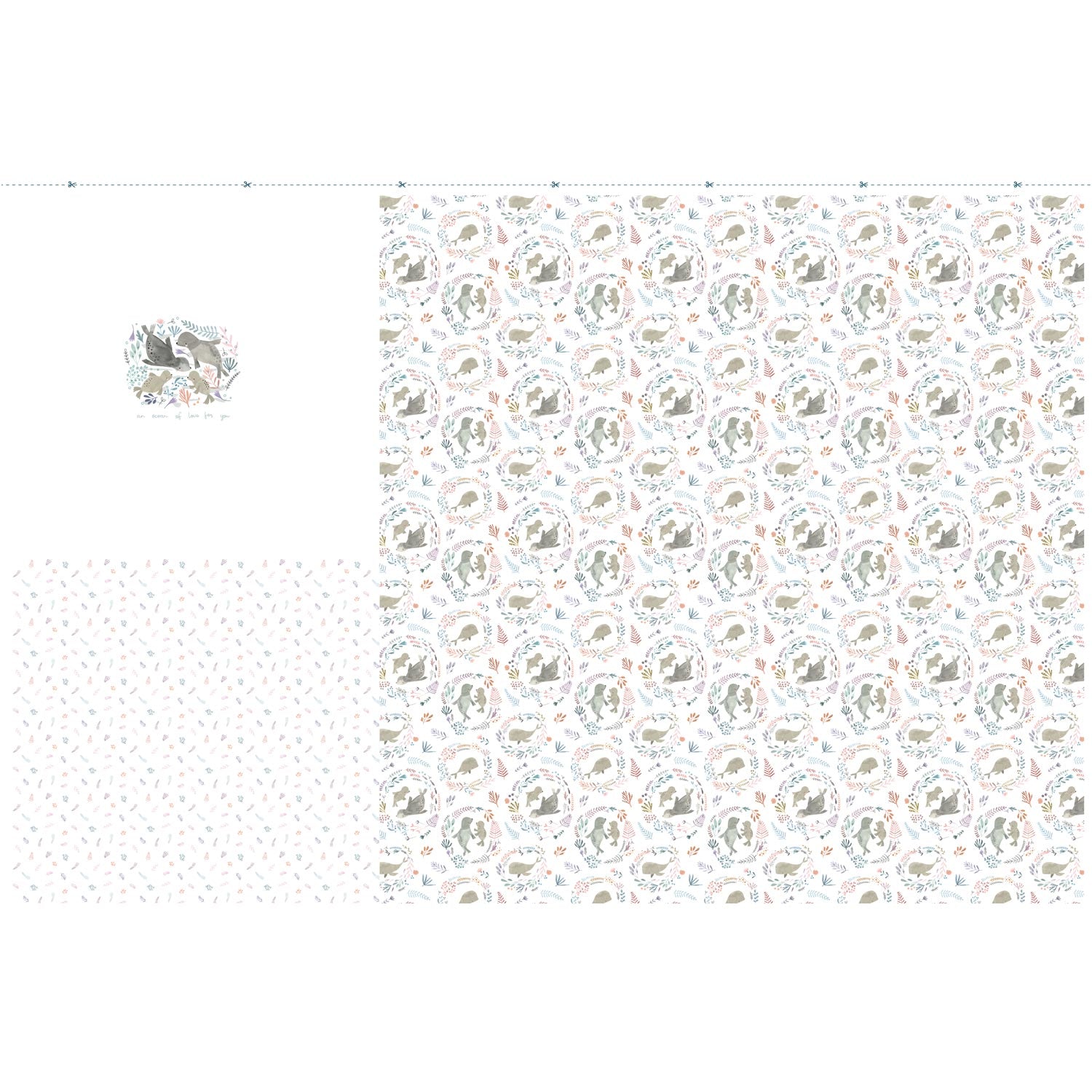 Design with seals swimming through coral reefs and coordinating fabric for the sleeves on a white background. Panel in jersey fabric for sewing a t-shirt for sizes 12 months to 12 years, or for a toddler dress.