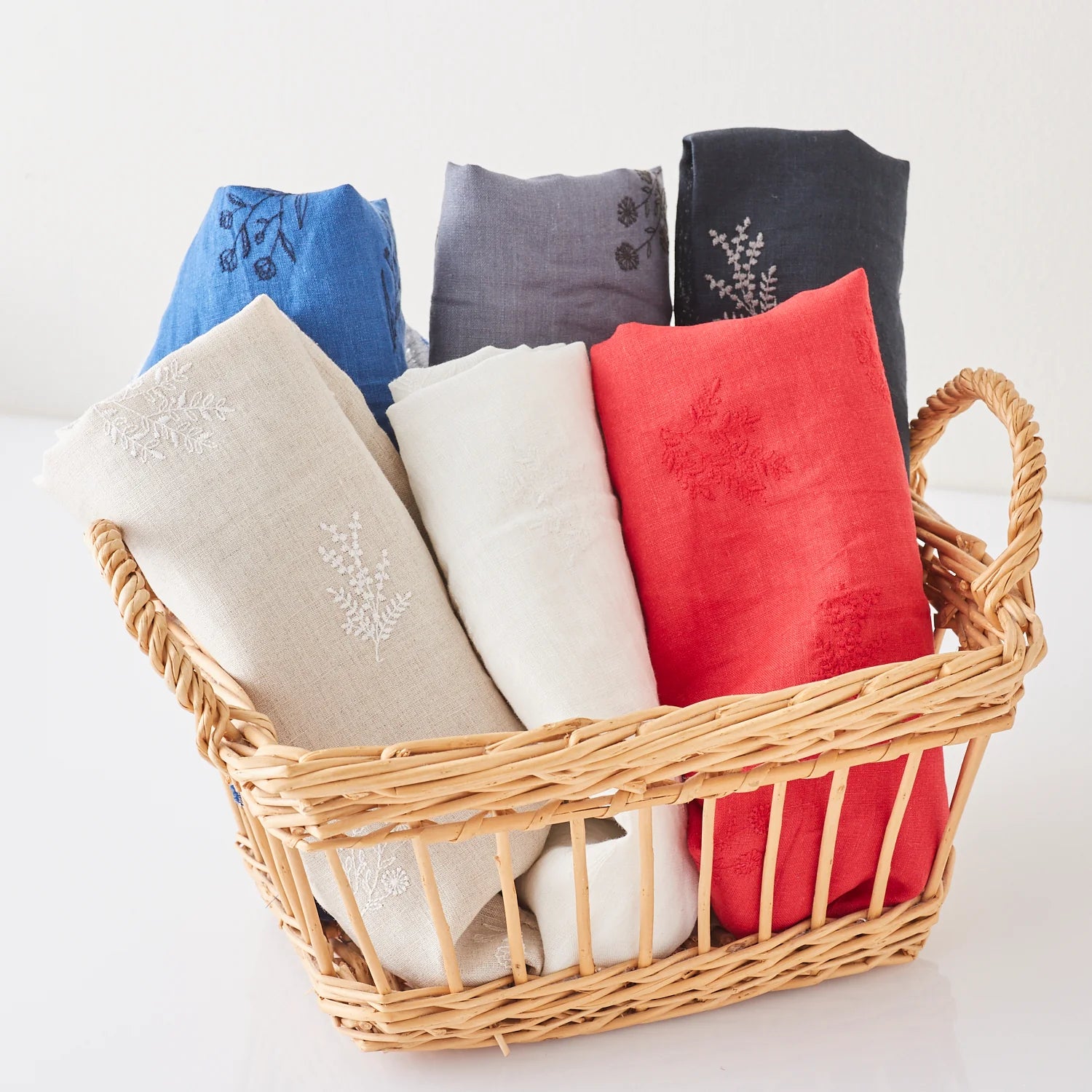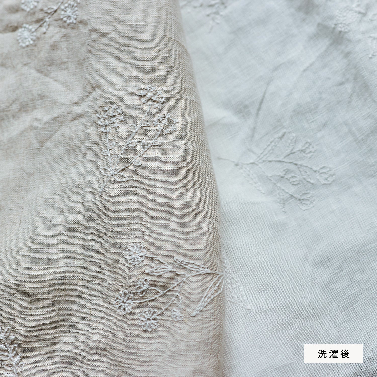 Linen fabric with embroidered florals. From the "NUNO TO MONO" series comes a luxurious embroidered fabric made from 100% linen that is slightly thin and easy to handle!