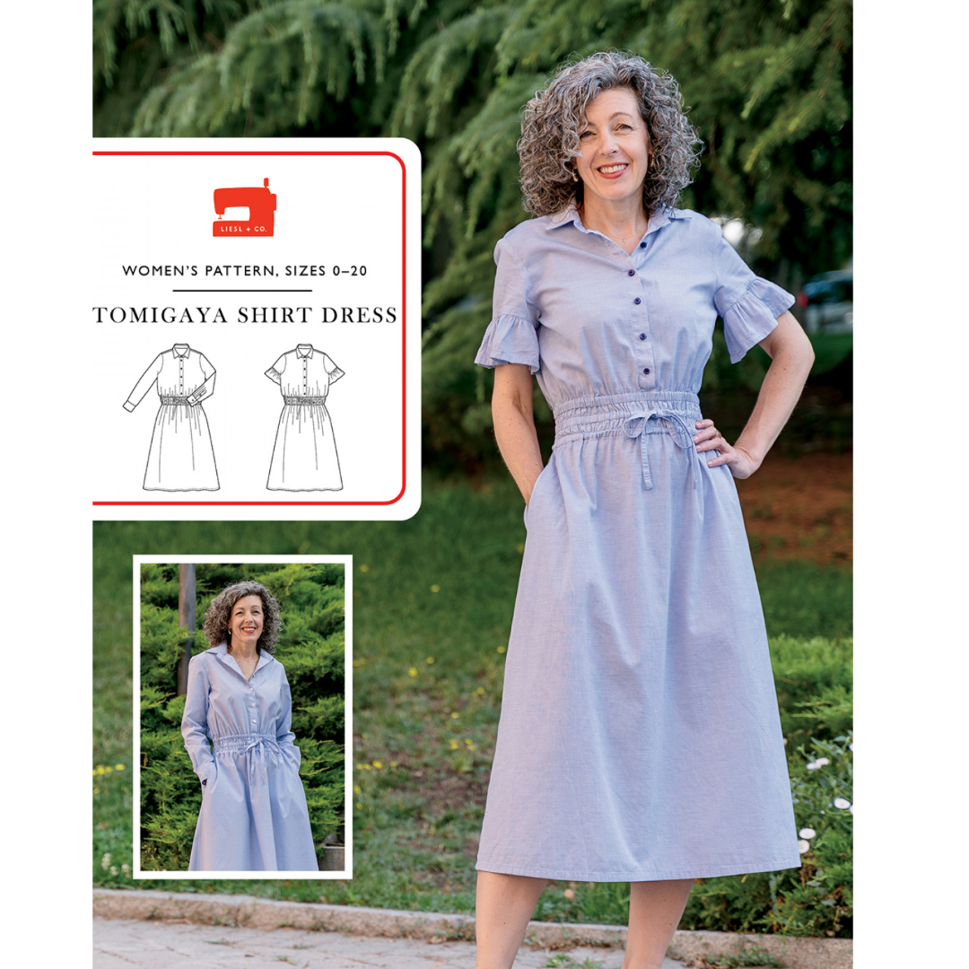 Choose from long sleeves with a tower placket and button cuffs (View A) or short sleeves with ruffle detail (View B). The below-the-knee skirt can be lengthened or shortened to suit your preferences. This style can be worn year-round and layered in cooler weather.