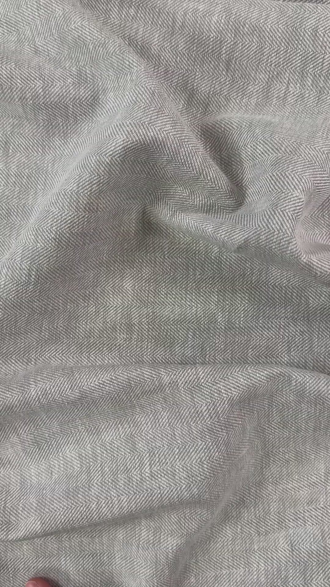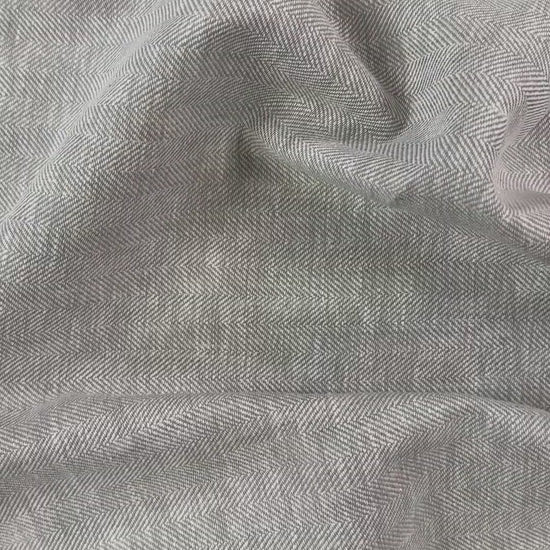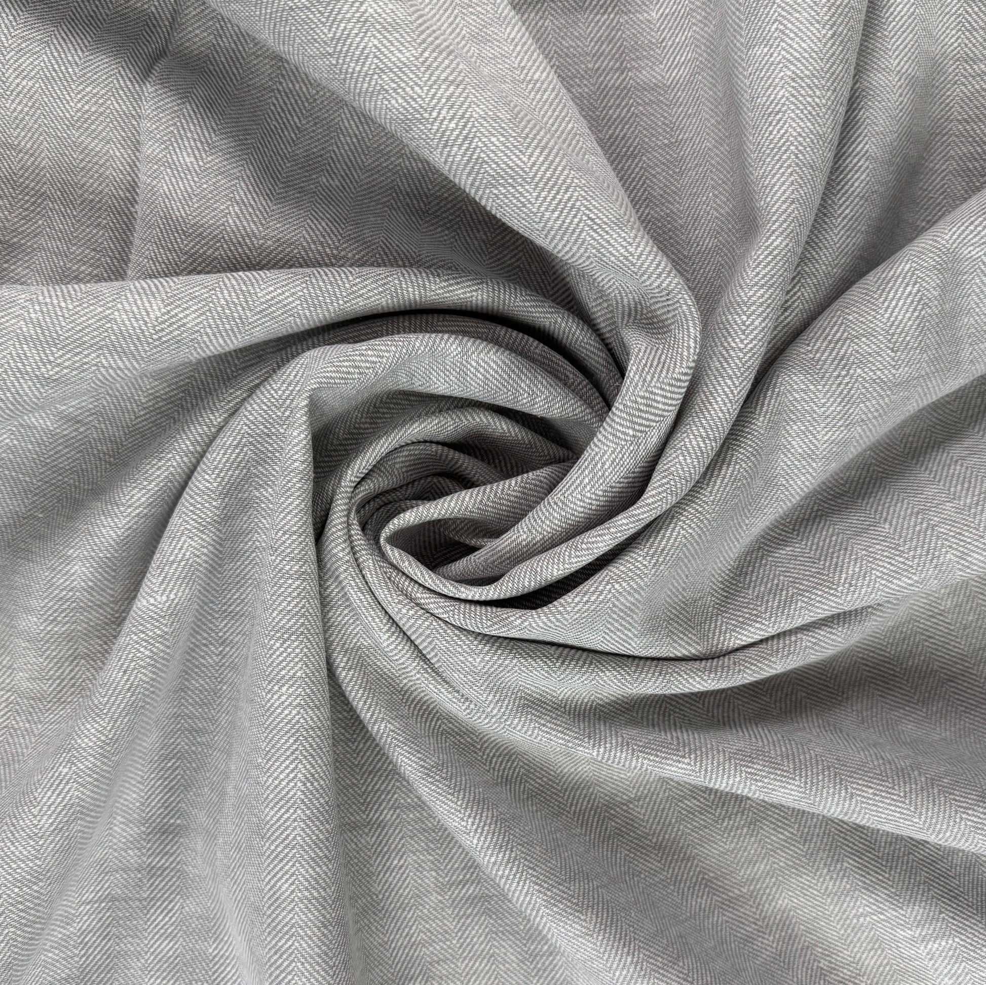 Linen and cotton fabric featuring a wide herringbone motif. Midweight with moderate drape, this fabric is great for pants, trousers, dresses, light jackets, shorts & more.