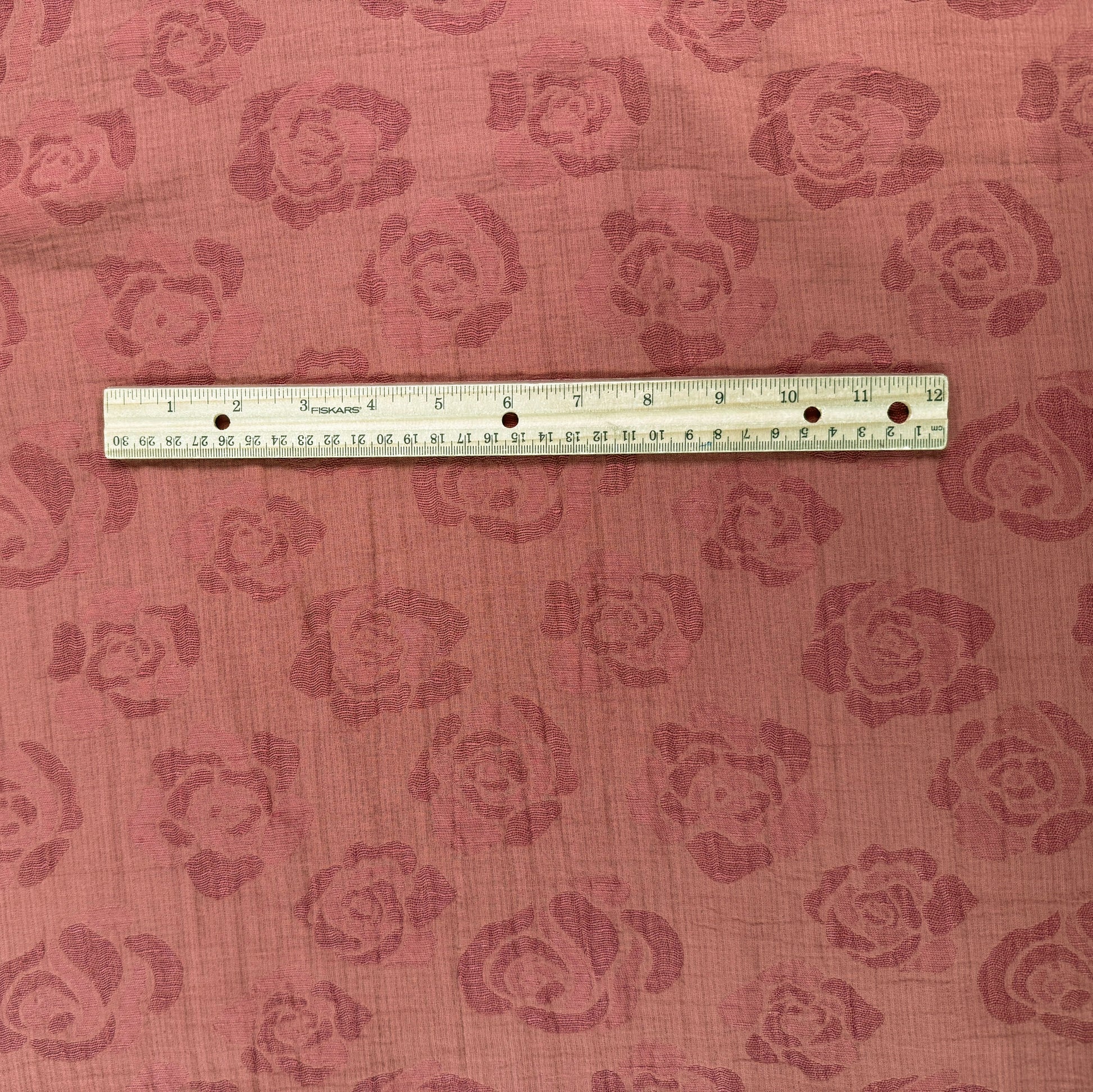 Use either side of this reversible cotton linen fabric with a rose jacquard design. Loosely woven, soft and breathable, this fabric can be used for casual day wear or more sophisticated evening wear during warmer months.