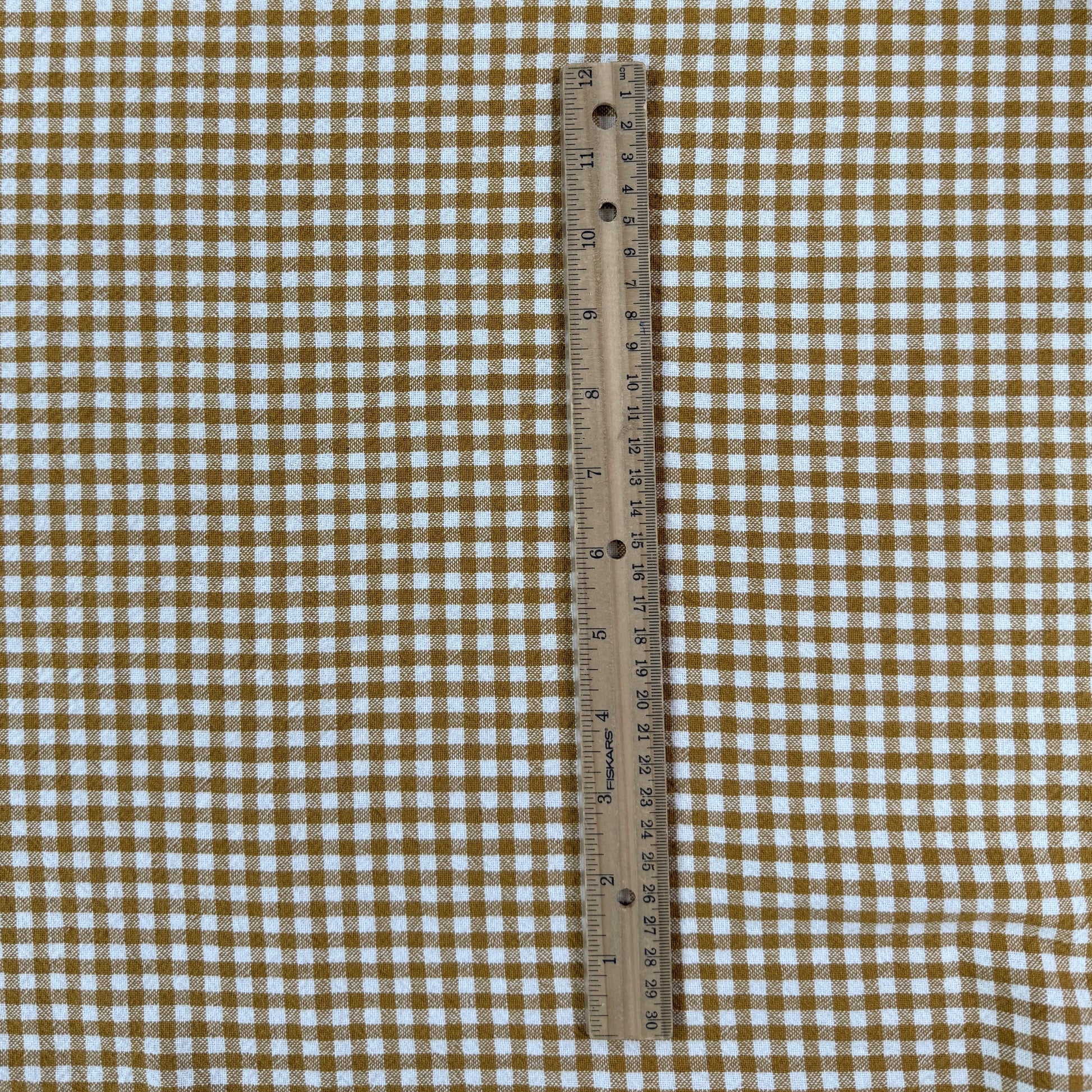 Woven heavyweight gingham in mustard and white. The heavier weight makes it great for fall dresses or skirts.