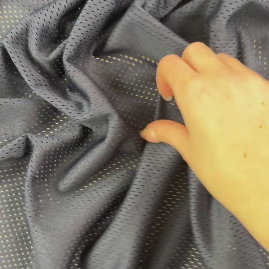 Ultra breathable sports mesh fabric with tricot warp knit engineering. This fabric features tiny eyelets that improve air flow and breathability. Use it for sports jerseys, jacket lining, mesh tanks, or breathable cut outs.