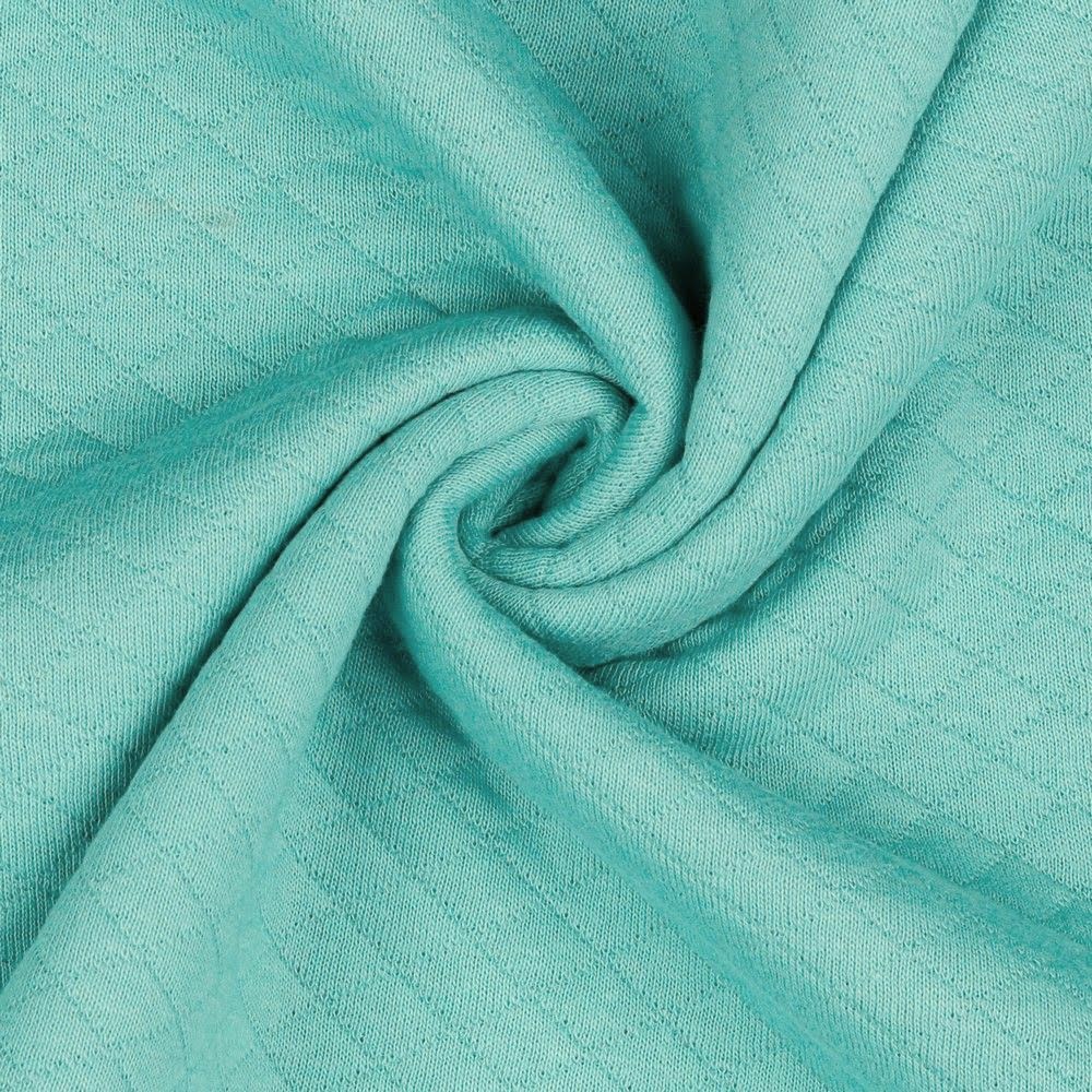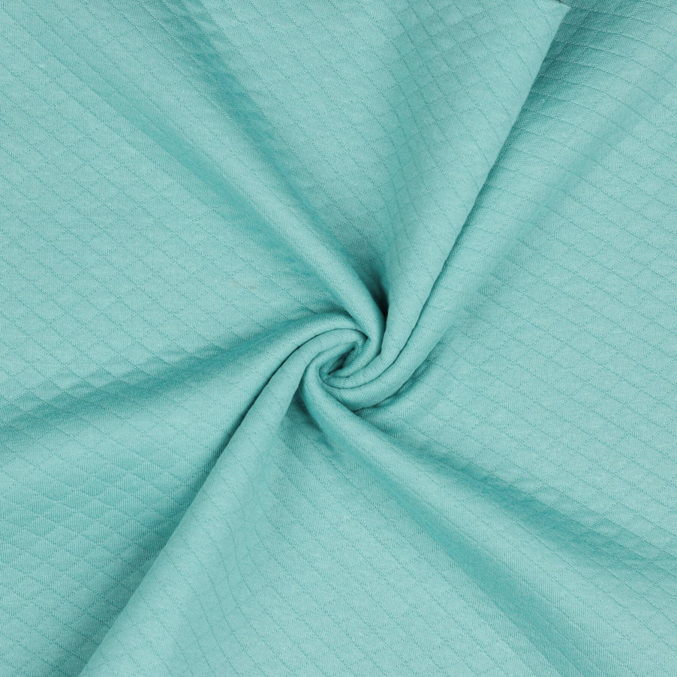 Quilted sweater knit by Poppy EU. This fabric is two layers of cotton jersey knit lightly padded with polyester batting and quilted in a diamond pattern.