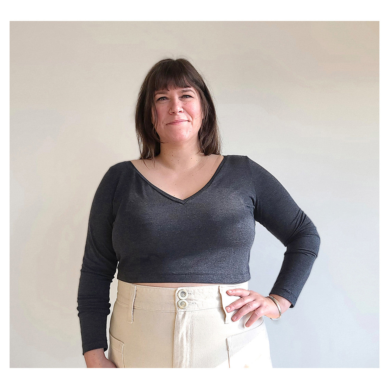 Sewing Pattern - The Skyline Tee (Curvy sizes 16-34) is a classic, fitted, body-con t-shirt designed for stretch knits. There are five different necklines to choose from - a low scoop front, a low scoop back, a high back, a jewel neck or two V-neck variations. There are four different sleeve options - a long slim sleeve, an elbow length slim sleeve, a gathered long sleeve and a cap sleeve. There are two hem lengths - hip length and cropped. Make a t-shirt for every season.