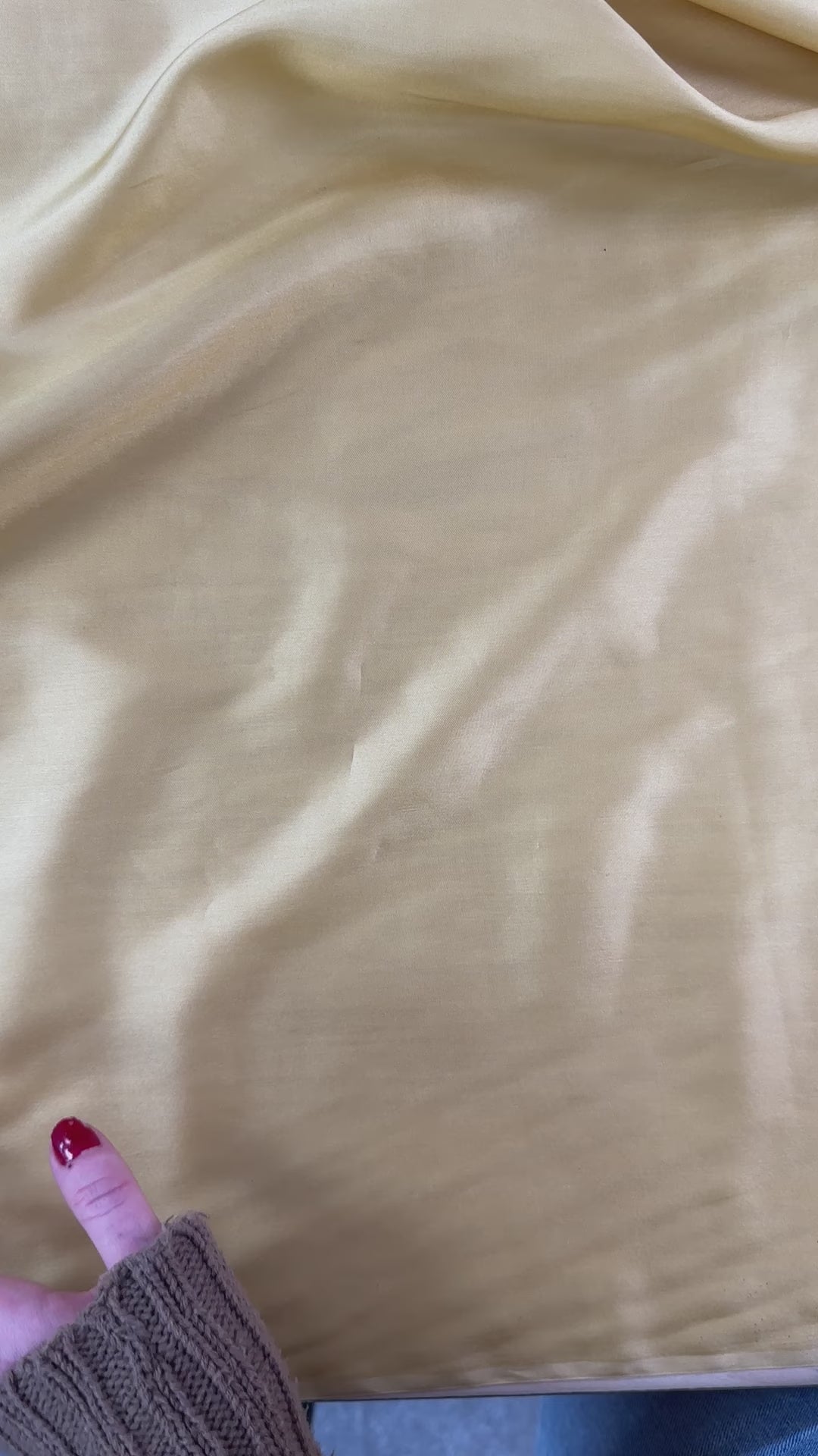 Soft yellow silk habotai fabric. Sheer and soft to the touch, this lightweight fabric would make beautiful blouses, dresses and summer clothing.