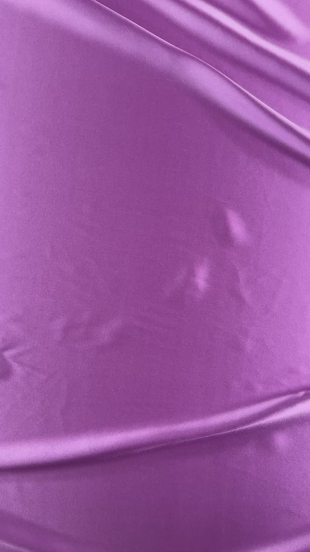 An absolutely stunning orchid purple stretch silk charmeuse. Make anything from a lovely evening dress to a luxurious set of pajamas & more. Rare to find such lovely colours in this width and with stretch!