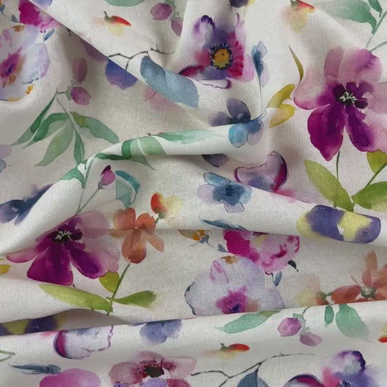 Watercolour Florals - Purple, Blue & Ivory - Linen Blend Slub