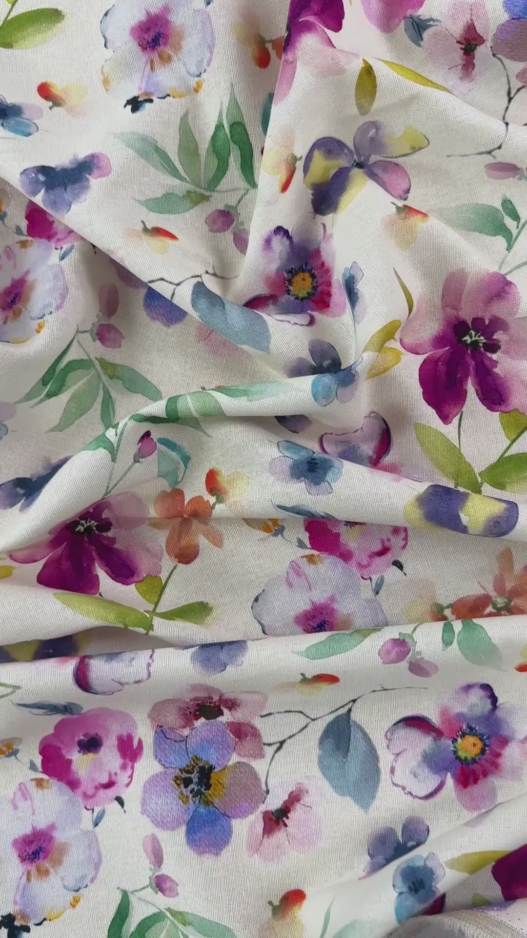 Get ready for summer with this lovely digitally printed watercolour floral fabric. Made from a blend of rayon and linen fibres, this fabric has a slub texture that adds depth, texture and dimension. This blended fabric has the perfect balance of drape from the rayon and breathability from the linen, making it a suitable choice for warm weather garments or garments needs movement. Use it for dresses, children's clothing, blouses, skirts & more.
