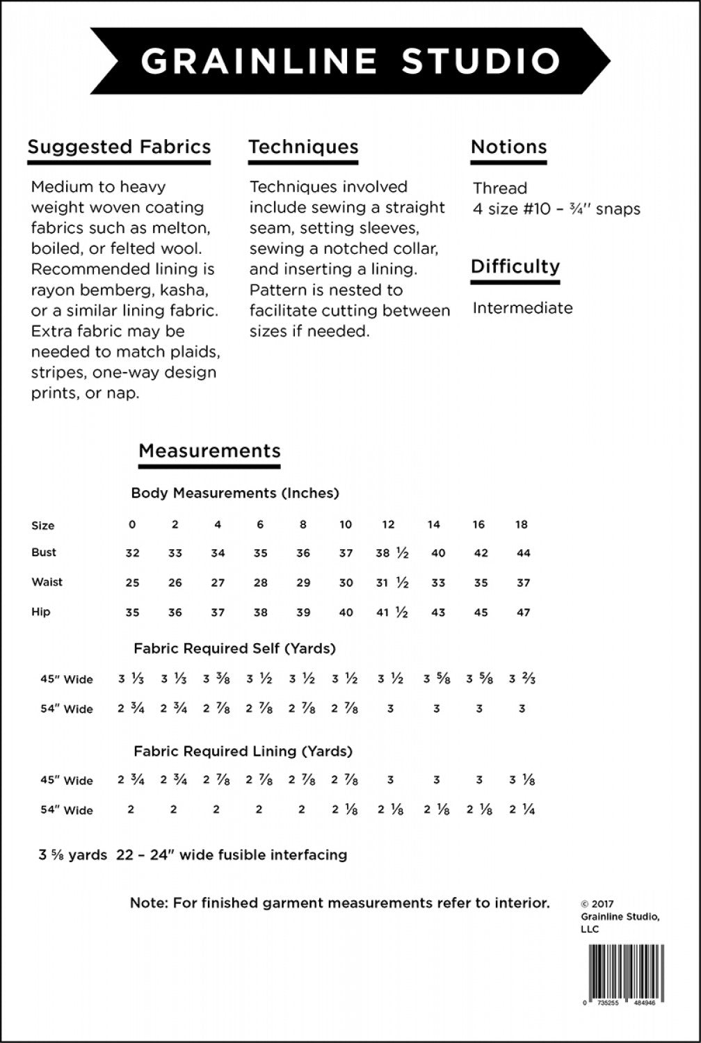 The chic style of the Yates Coat will instantly upgrade any cool weather outfit. Inseam pockets and a hidden double breasted snap closure keep the silhouette sleek while the slightly oversized lapel and mid-thigh length give the Yates a modern aesthetic. A full lining and two-piece sleeves ensure you’ll be wearing your Yates for years to come. Techniques involved include sewing a straight seam, setting sleeves, sewing a notched collar, and inserting a lining. Pattern is nested to facilitate cutting between sizes if needed.
